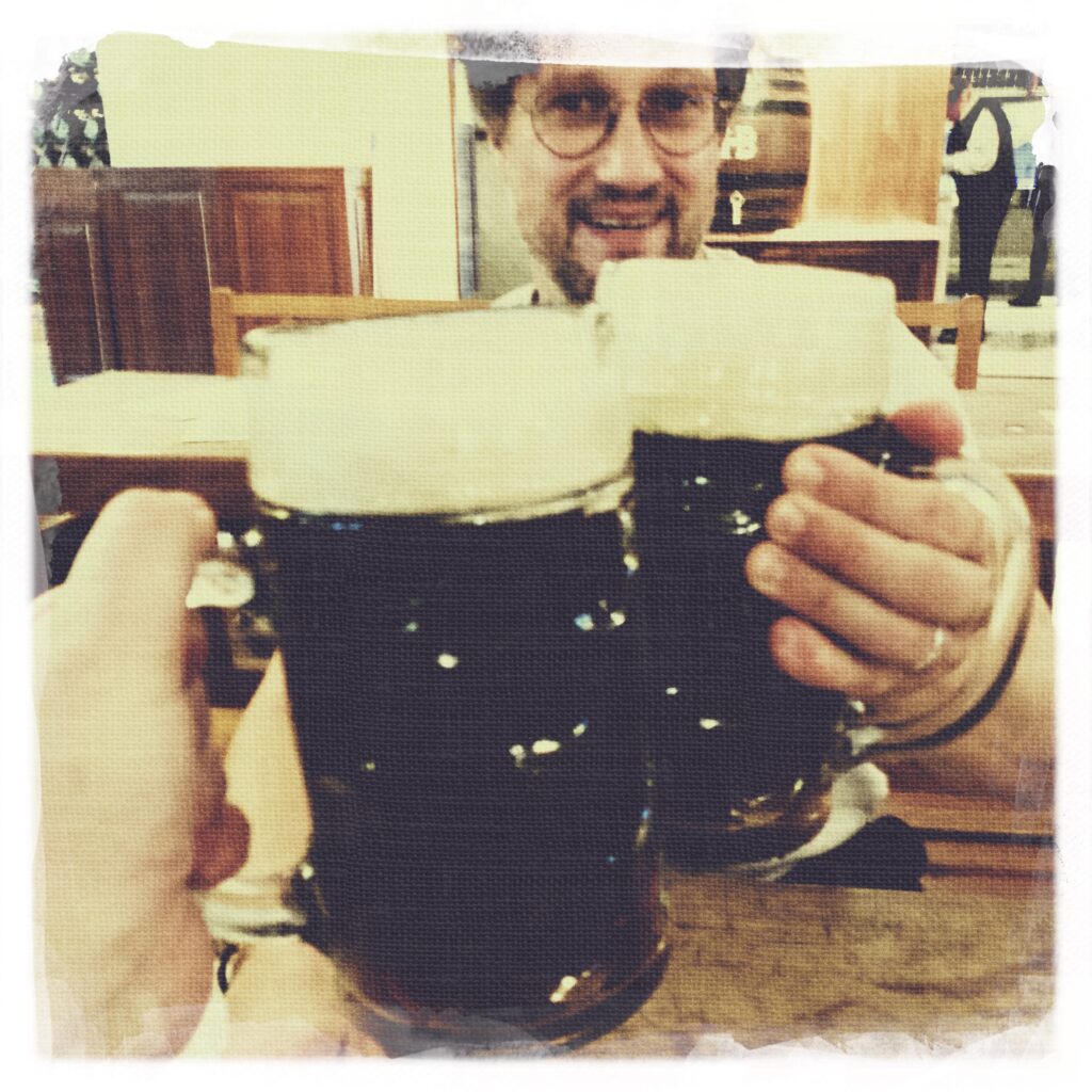 Unser erster Weg (also meiner und der meines Koffers) führte uns zum Viktualienmarkt. Dort stärkte ich mich mit einem LKW vom Ross, mein Koffer ging leider leer aus. Danach trennten sich unsere Wege dann doch: während ich mit meinem Freund Münchner Marc (der glücklicherweise krankgeschrieben war) ins Hofbräuhaus ging, musste mein Koffer die Zeit um Kofferraum von Marcs Auto ausharren.