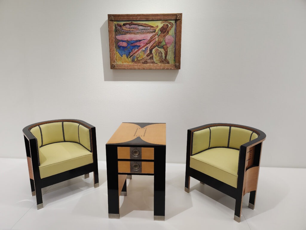 Dergestalt gestärkt konnten wir den nächsten Tagesordnungspunkt in Angriff nehmen: das Leopold Museum, die „Schatzkiste des Wiener Jugendstils“. Auch ich, als bekennender Banause, konnte durchaus Zugang zu den gezeigten Werken finden. Wobei man wahrscheinlich auch zugeben muss, daß Jugendstil sowas wie das „easy listening“ der bildenden Kunst ist. Und die Reihe der illustren Namen (und derer Werke) war Legion. Allen voran Klimt und Schiele, aber auch Gerstl, Kokoschka und viele andere, von denen man „schonmal gehört hat“. Was mich, erwartungsgemäß, mehr als die Gemälde angesprochen hat, waren die „dinglichen“ Ausstellungs-Objekte (Glas-Kunst, Gebrauchsgegenstände, Möbel, aber auch Architektur-Elemente).